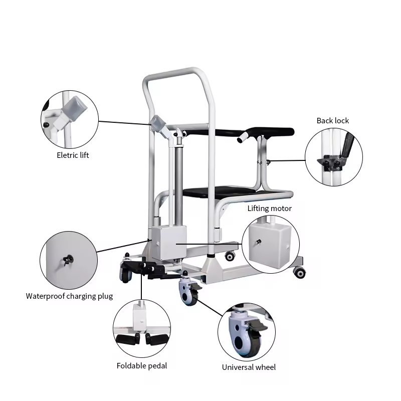 Electric Lift Transfer Chair는 환자를 전달하는 편리하고 안전한 방법을 제공합니다. 간병인은 환자를 침대, 욕실, 화장실 및 기타 장소로 쉽게 옮길 수 있습니다. 흑백의 조합은 아름답고 세련됩니다. 본체는 고강도 강철 구조를 채택하며, 이는 튼튼하고 내구성이 뛰어나며 135kg의 하중을 안전하게 견딜 수 있습니다. 전송 리프트 의자뿐만 아니라 휠체어, 화장실 의자, 샤워 의자로도 사용할 수 있습니다. 간병인과 그 가족을위한 첫 번째 선택입니다.